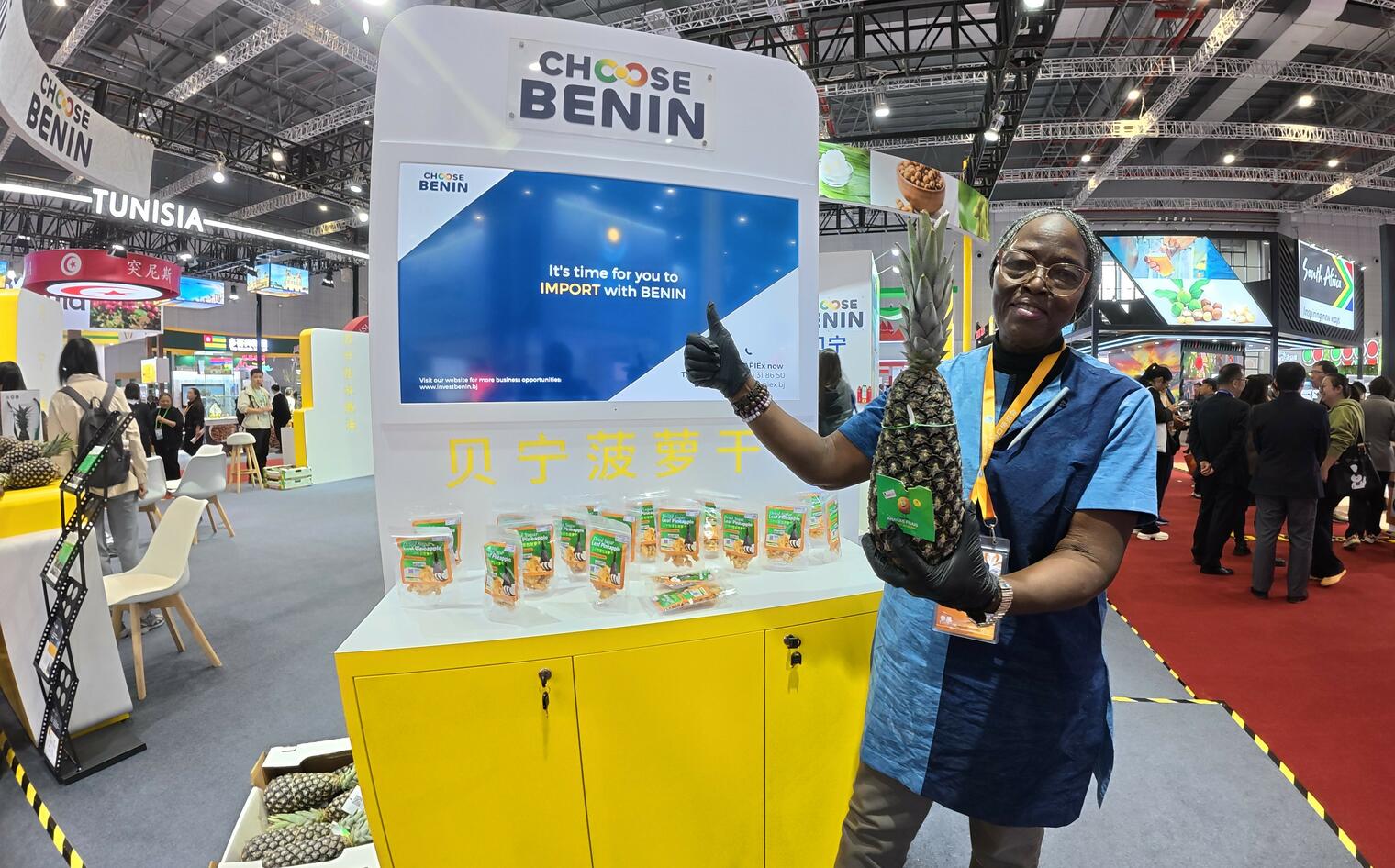 Présentant des produits phares comme l’ananas « Pain de Sucre », les amandes de cajou, le beurre de karité et le miel, le stand béninois a attiré des acheteurs et des partenaires internationaux. Parmi les moments marquants, un accord stratégique pour l’exportation d’ananas en Chine a été signé, incluant une collaboration sur cinq ans pour améliorer les infrastructures locales.
