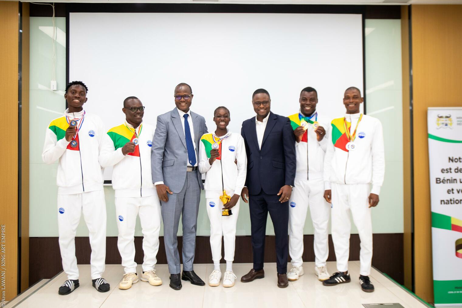 « Chaque athlète qui honore son pays mérite d’être honoré en retour. Vous avez porté haut les couleurs de notre nation, et le Chef de l’État ainsi que tout le gouvernement tiennent à réaffirmer leur engagement en faveur de la formation, de la détection des talents et de l’amélioration des infrastructures sportives », a déclaré le Ministre des Sports, Benoît DATO, tout en relayant les félicitations du Président Patrice TALON et de l’ensemble du peuple béninois.